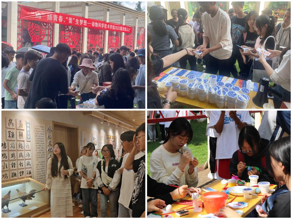 当日下午,学院结合专业特色在鸡文化博物馆举行了“‘鸡’扬青春,‘蛋’生梦想”迎新活动。新生们前往鸡文化博物馆进行参观,随着讲解员了解了鸡的起源与进化、鸡的价值、鸡的生物学、鸡的文化与习俗等知识,并在现场领取了动科院迎新限定酸奶,参加了卤鸡美食品尝、彩绘鸡蛋等活动。在妙趣横生的活动中,建立起对学院和专业的认知。